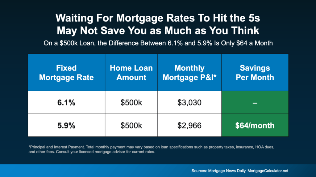 Yes, over time that $64 a month can add up. But it’s far from the dramatic swing many buyers imagine when they say they’re “waiting for the 5s.”